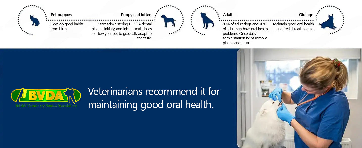 LERCEAยฎ Oral Liquid for the dental and digestive health of pets ensures a thorough and clean feeling in the mouth.