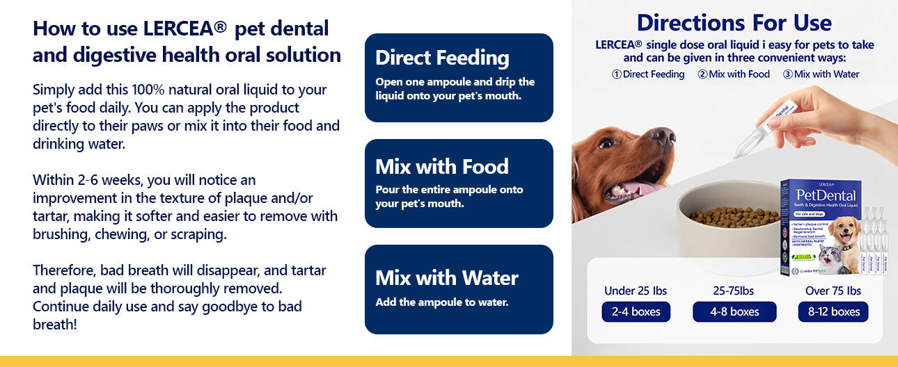 Order today and give your pet healthier teeth and fresher breath with LERCEAยฎ Oral Liquid for Pet Dental and Digestive Health!